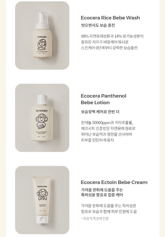 維他命B5、葡萄水、獲得法國ECOCERT有機認證的天然原料,獨家專利保濕因子,防止水分從寶寶肌膚中散發,