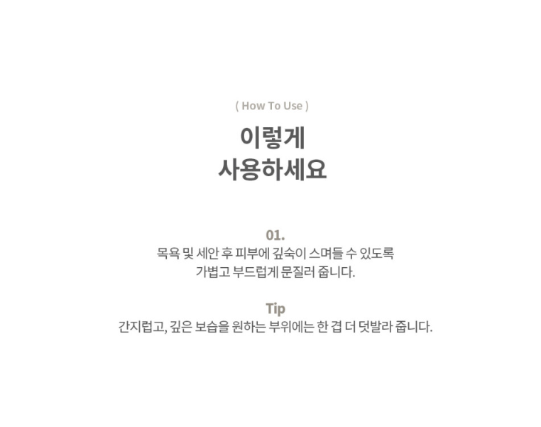 沐浴及潔面後輕柔塗抹,幫助面霜深層滲入肌膚。可在癢癢的、想要深層保溼的部位再塗抹一層。